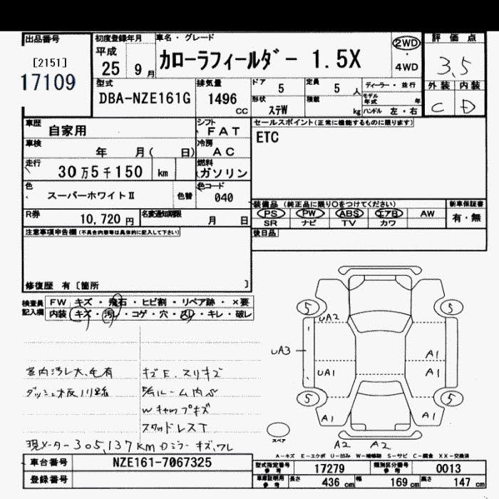 TOYOTA COROLLA FIELDER - лот 17109