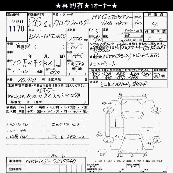 TOYOTA COROLLA FIELDER - лот 1170