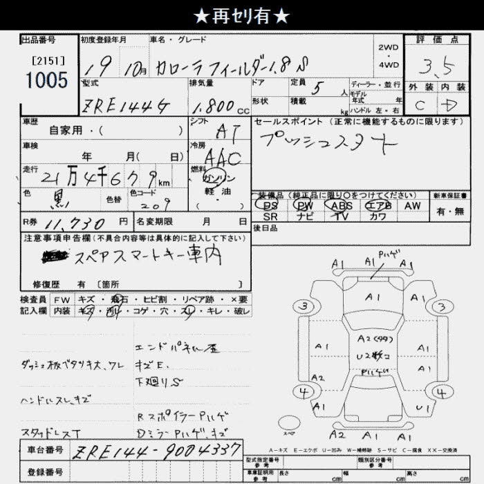 TOYOTA COROLLA FIELDER - лот 1005