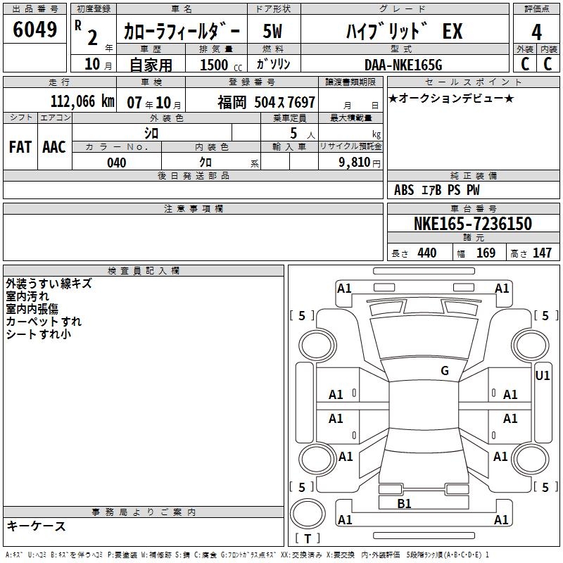 TOYOTA COROLLA FIELDER - лот 6049
