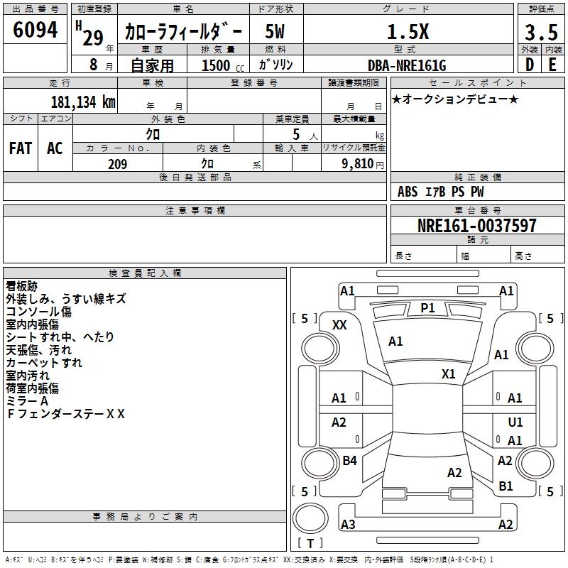 TOYOTA COROLLA FIELDER - лот 6094