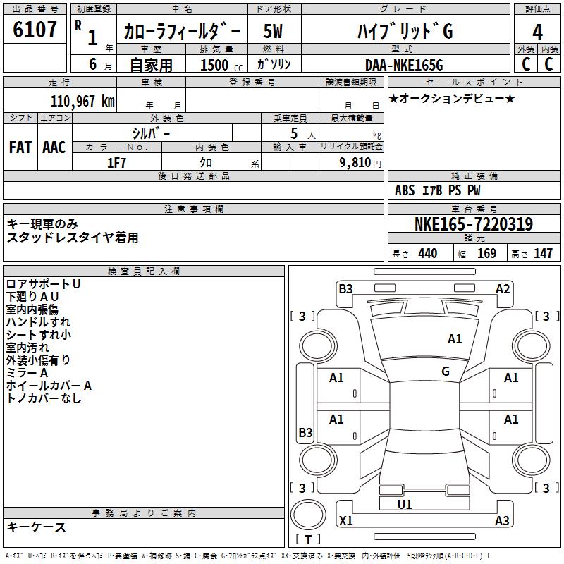 TOYOTA COROLLA FIELDER - лот 6107