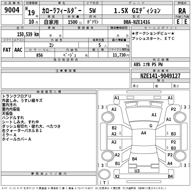 TOYOTA COROLLA FIELDER - лот 9004
