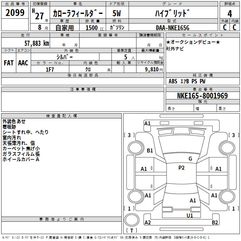 TOYOTA COROLLA FIELDER - лот 2099