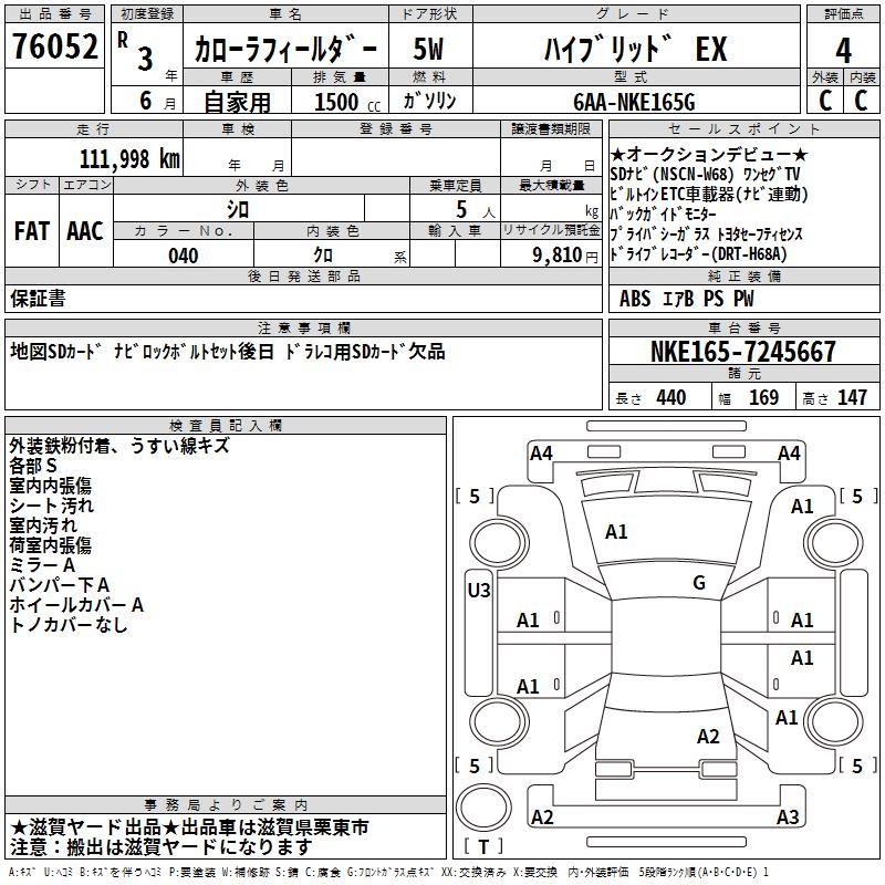 TOYOTA COROLLA FIELDER - лот 76052