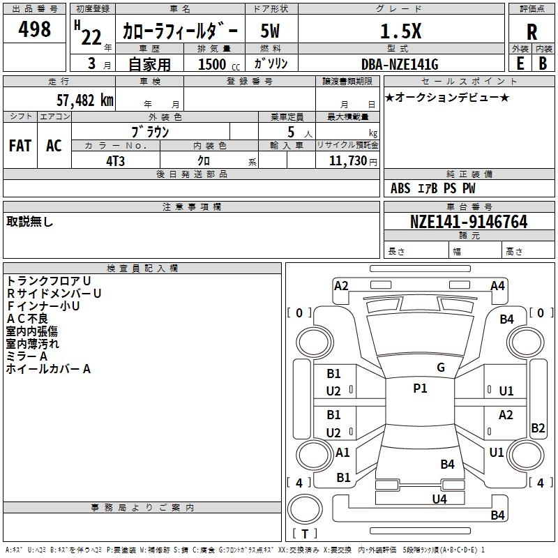 TOYOTA COROLLA FIELDER - лот 498
