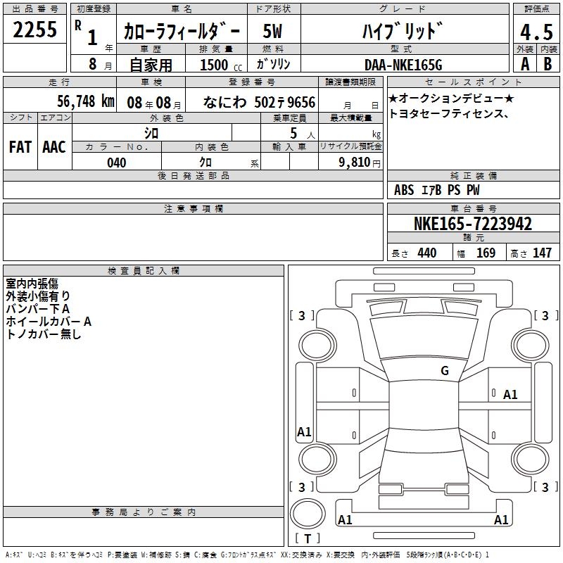 TOYOTA COROLLA FIELDER - лот 2255
