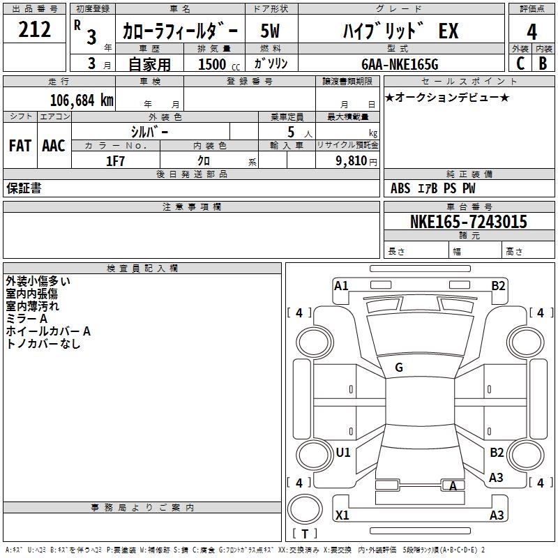 TOYOTA COROLLA FIELDER - лот 212