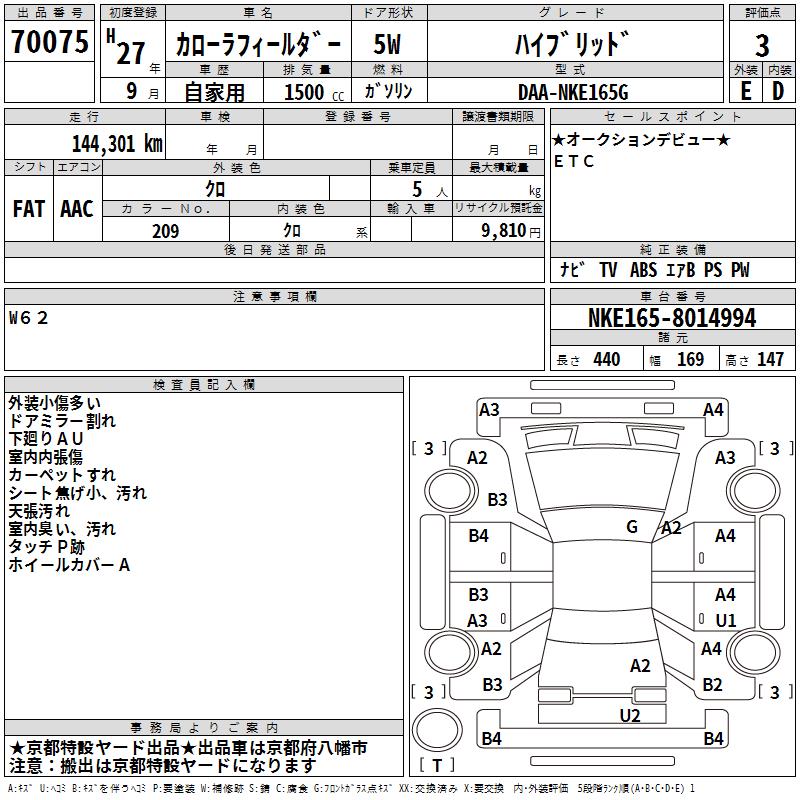 TOYOTA COROLLA FIELDER - лот 70075