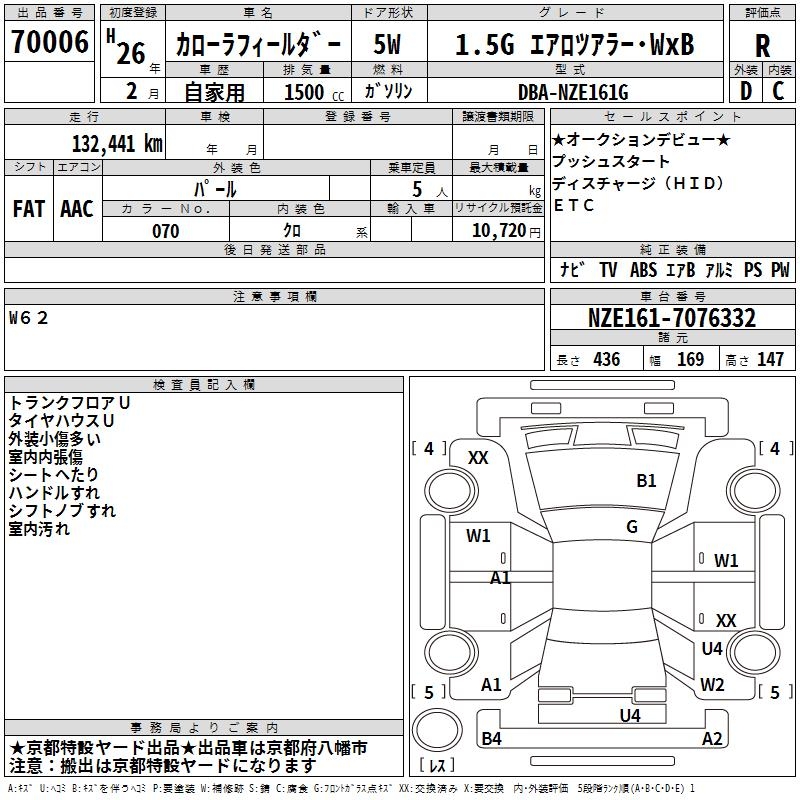 TOYOTA COROLLA FIELDER - лот 70006