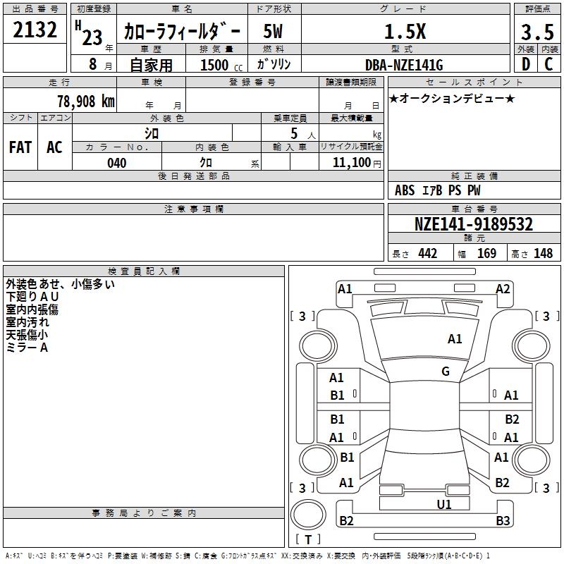 TOYOTA COROLLA FIELDER - лот 2132