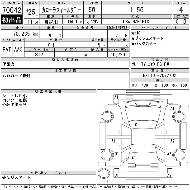 TOYOTA COROLLA FIELDER - лот 70042