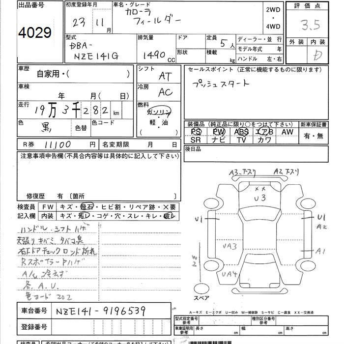 TOYOTA COROLLA FIELDER - лот 4029