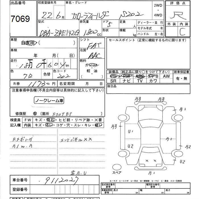 TOYOTA COROLLA FIELDER - лот 7069