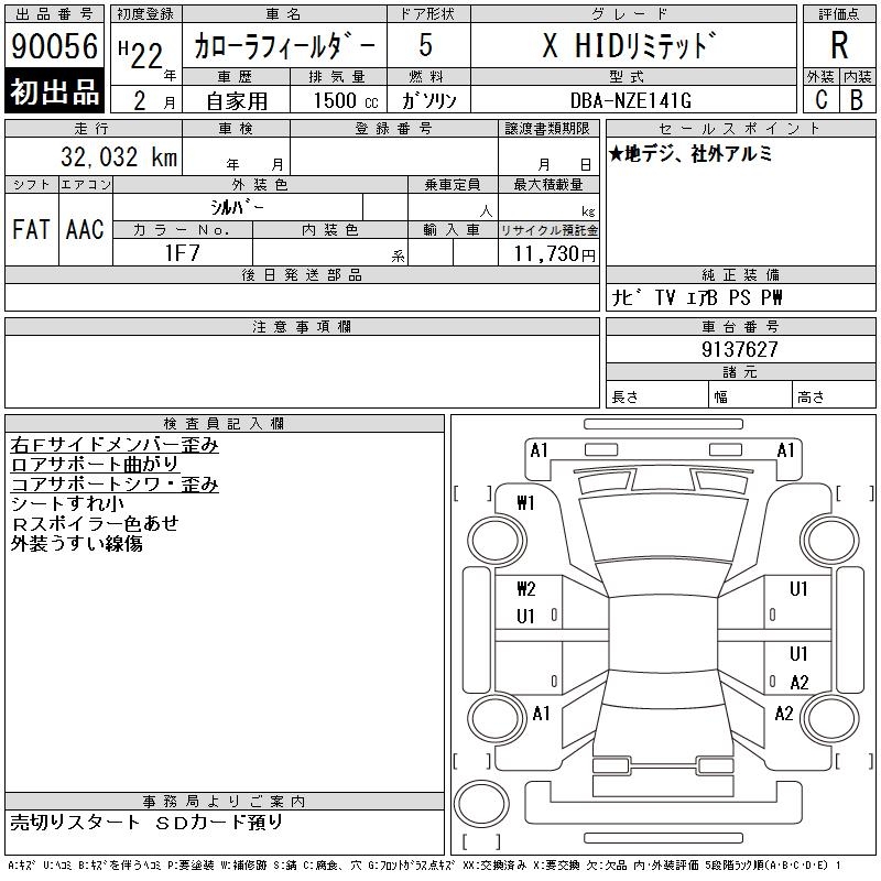 TOYOTA COROLLA FIELDER - лот 90056