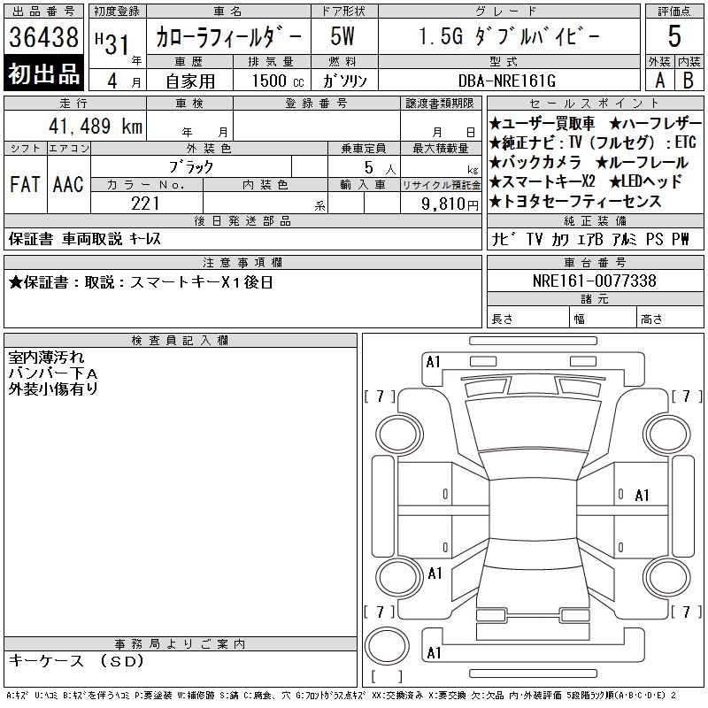 TOYOTA COROLLA FIELDER - лот 36438