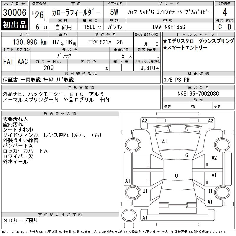 TOYOTA COROLLA FIELDER - лот 30006