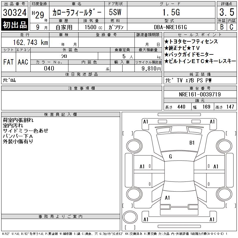 TOYOTA COROLLA FIELDER - лот 30324