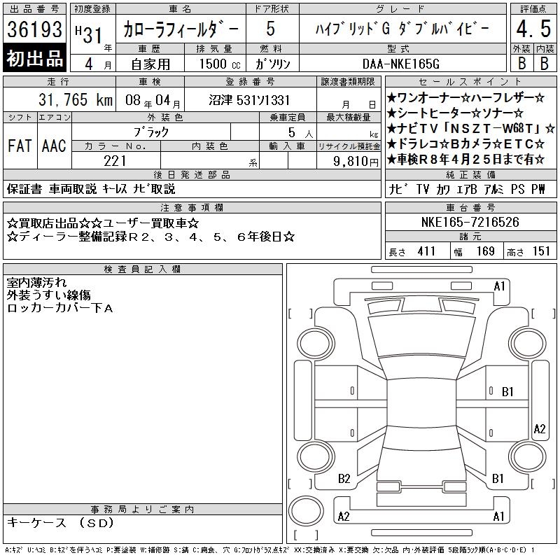 TOYOTA COROLLA FIELDER - лот 36193