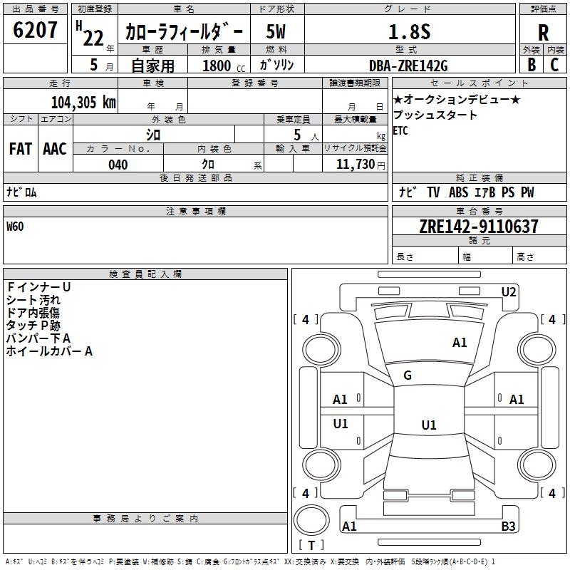 TOYOTA COROLLA FIELDER - лот 6207