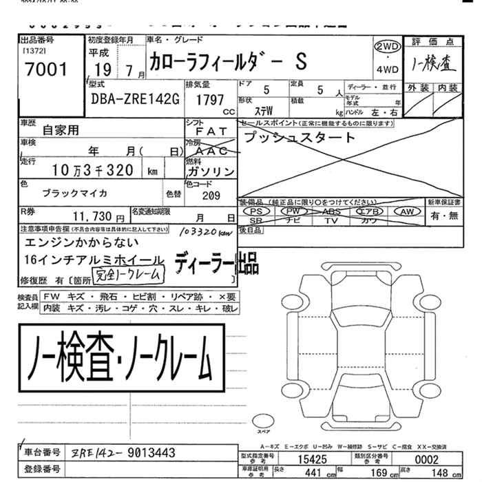 TOYOTA COROLLA FIELDER - лот 7001