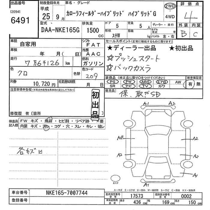 TOYOTA COROLLA FIELDER - лот 6491
