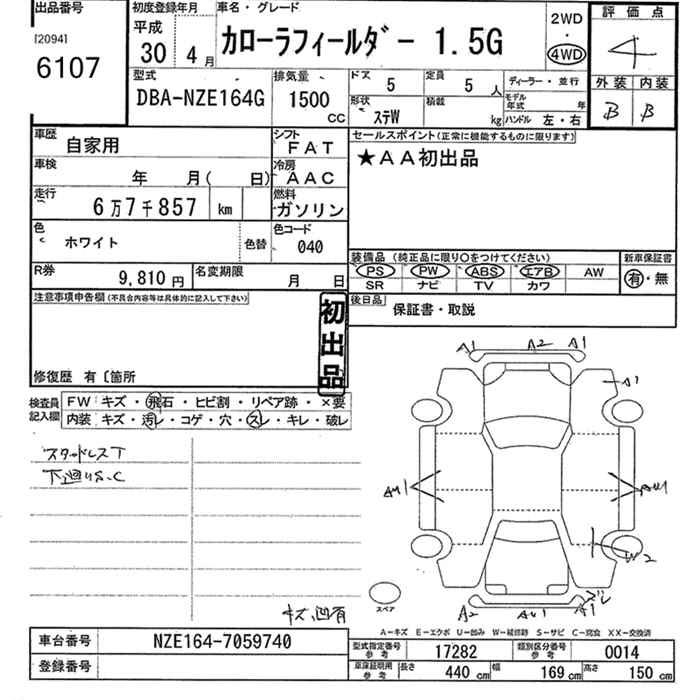TOYOTA COROLLA FIELDER - лот 6107