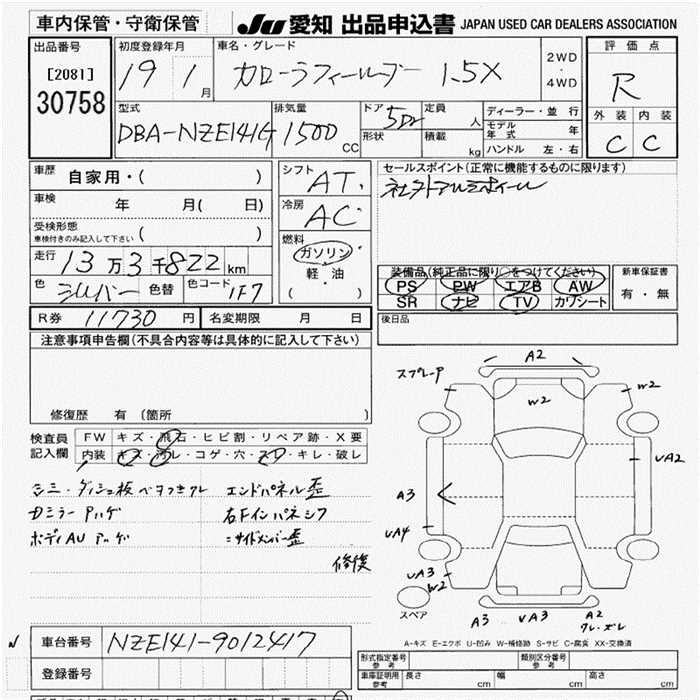 TOYOTA COROLLA FIELDER - лот 30758