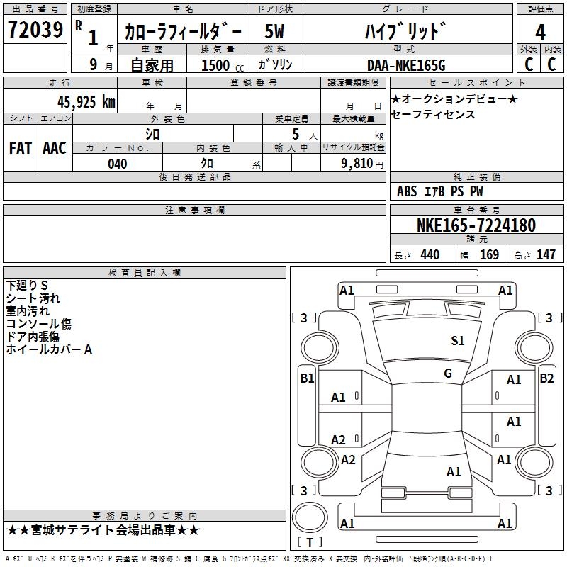 TOYOTA COROLLA FIELDER - лот 72039