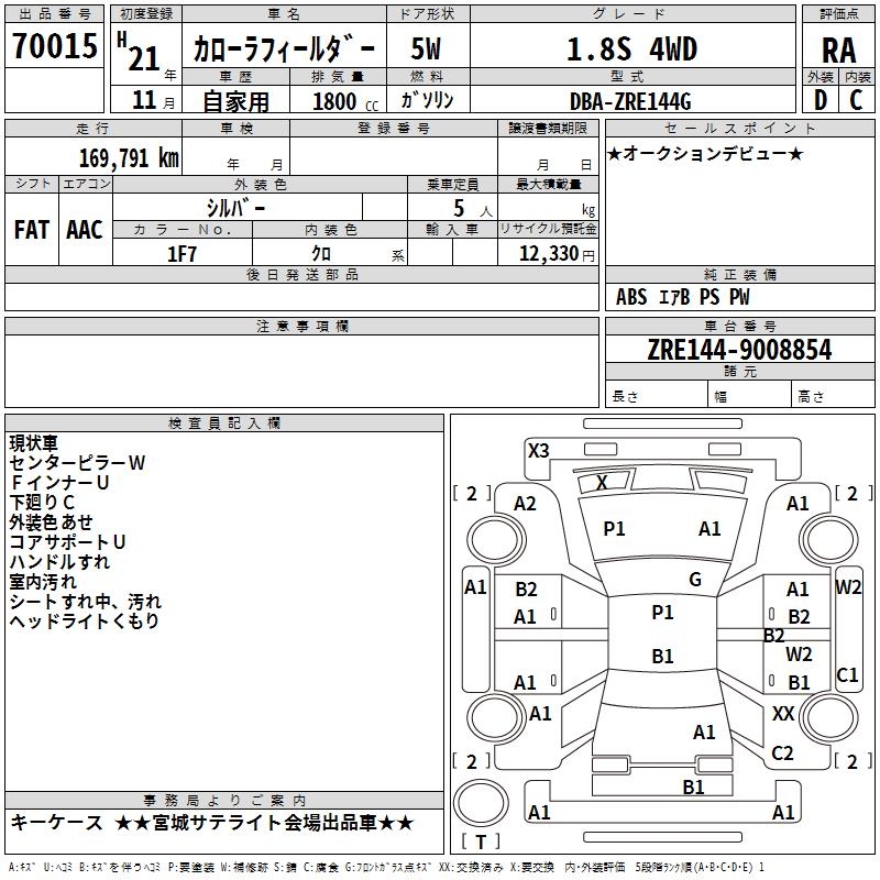 TOYOTA COROLLA FIELDER - лот 70015