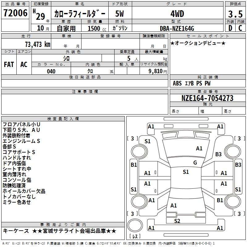 TOYOTA COROLLA FIELDER - лот 72006
