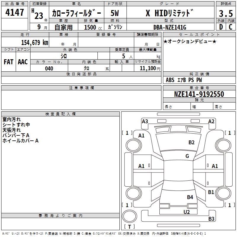 TOYOTA COROLLA FIELDER - лот 4147