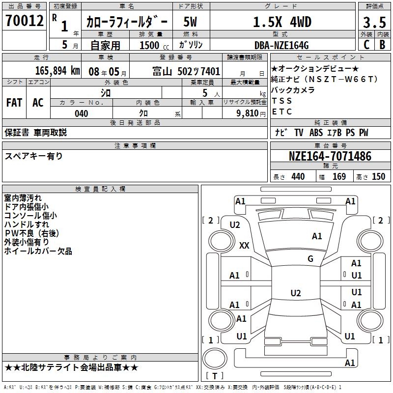 TOYOTA COROLLA FIELDER - лот 70012