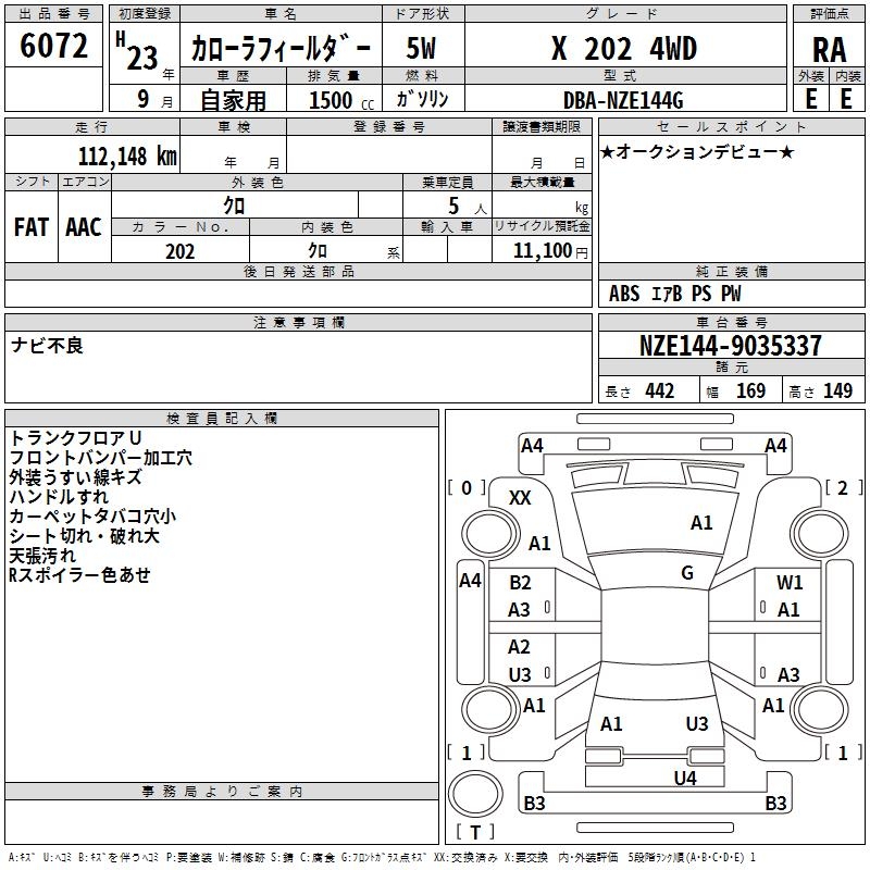 TOYOTA COROLLA FIELDER - лот 6072