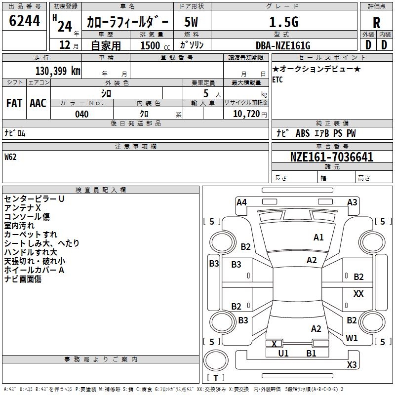 TOYOTA COROLLA FIELDER - лот 6244