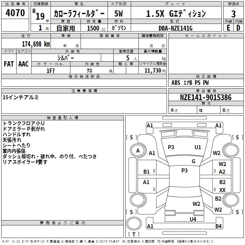 TOYOTA COROLLA FIELDER - лот 4070