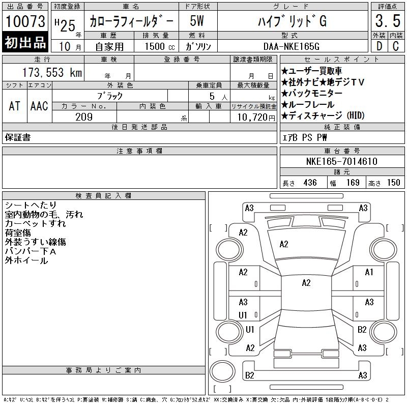 TOYOTA COROLLA FIELDER - лот 10073