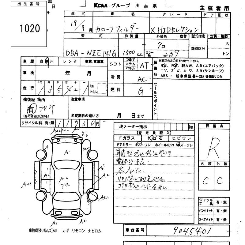 TOYOTA COROLLA FIELDER - лот 1020
