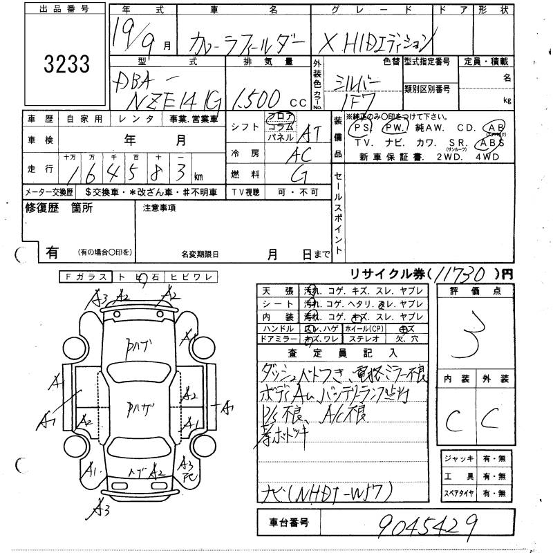 TOYOTA COROLLA FIELDER - лот 3233