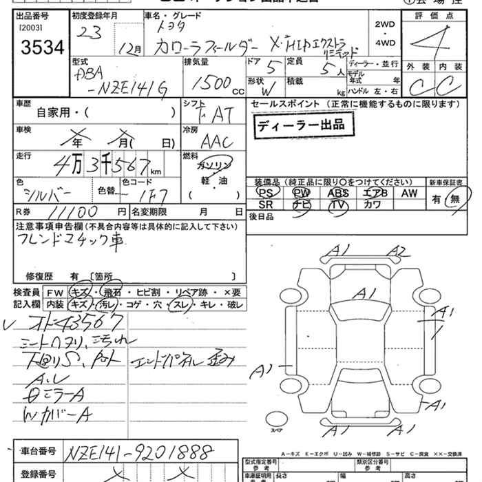 TOYOTA COROLLA FIELDER - лот 3534