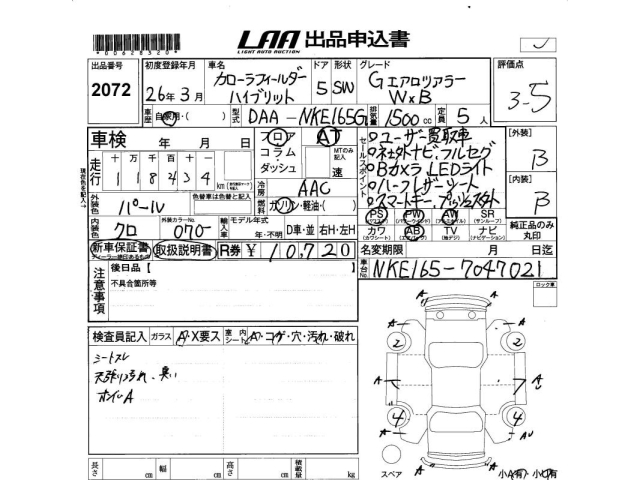 TOYOTA COROLLA FIELDER - лот 2072