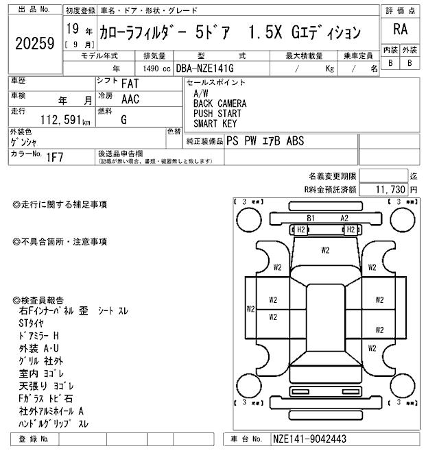TOYOTA COROLLA FIELDER - лот 20259