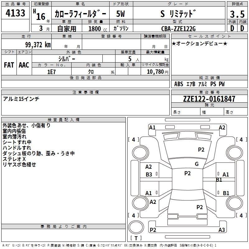 TOYOTA COROLLA FIELDER - лот 4133