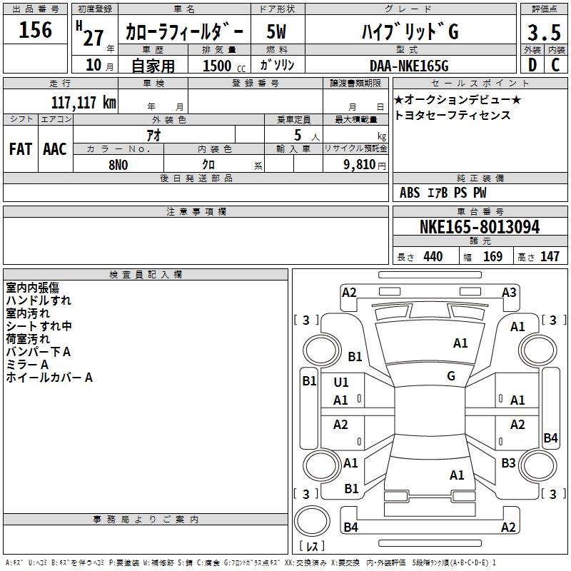 TOYOTA COROLLA FIELDER - лот 156