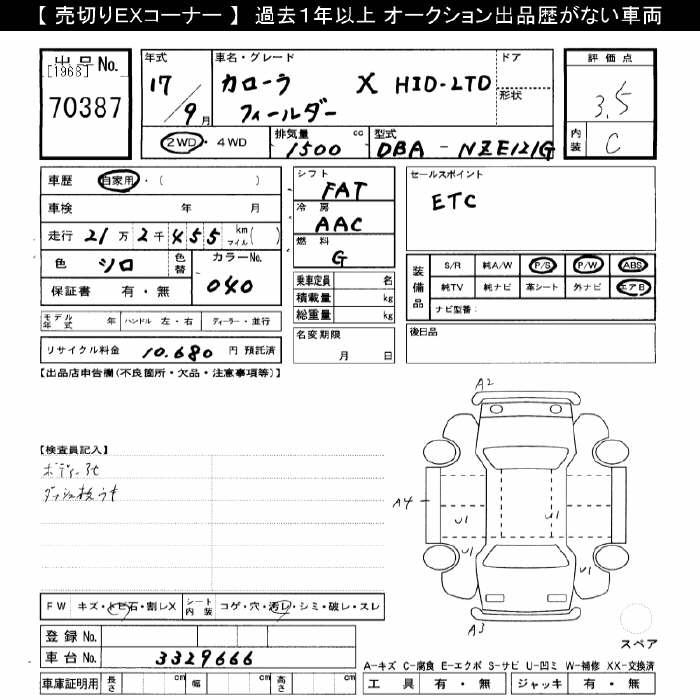 TOYOTA COROLLA FIELDER - лот 70387