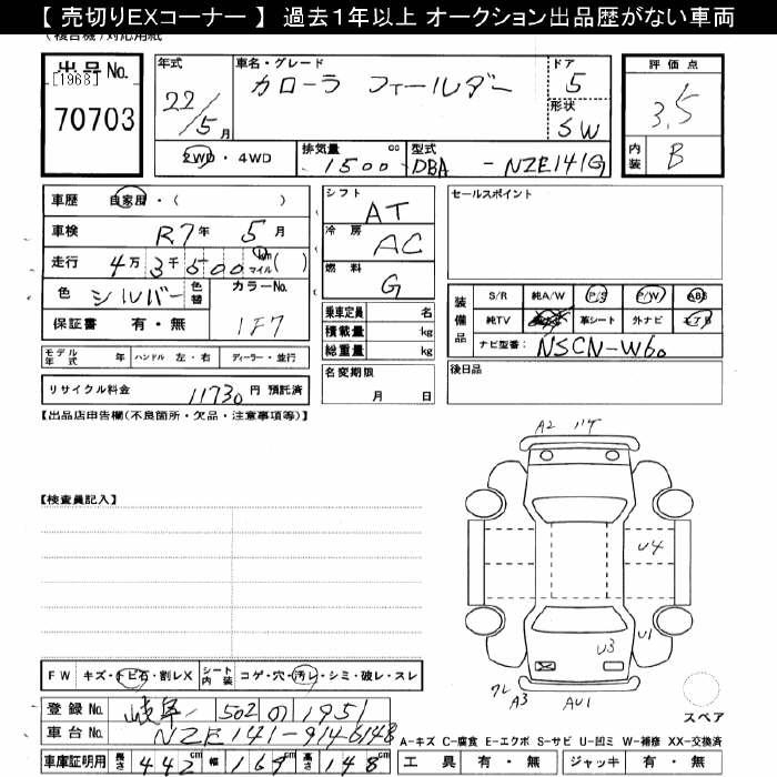 TOYOTA COROLLA FIELDER - лот 70703