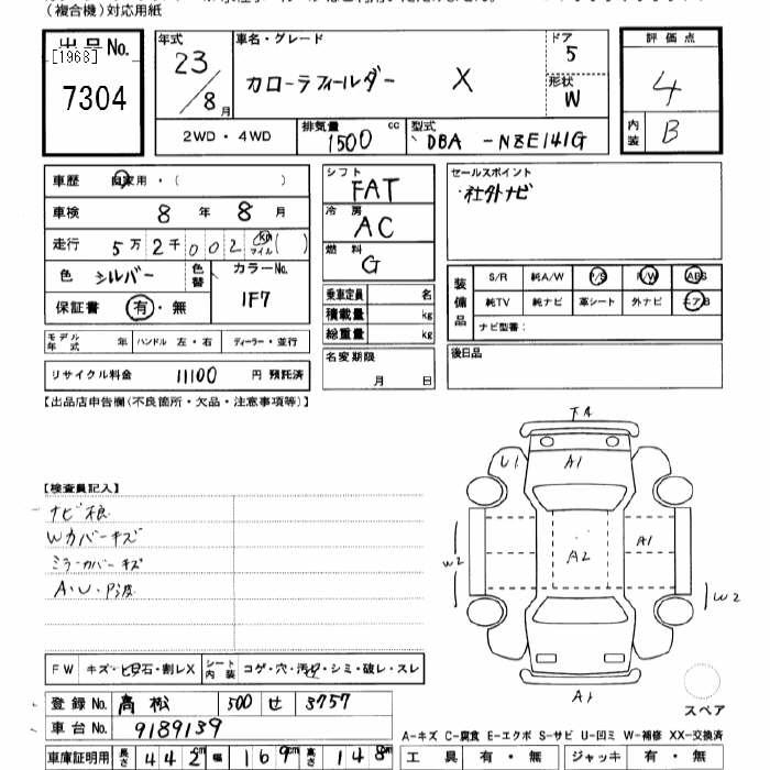 TOYOTA COROLLA FIELDER - лот 7304