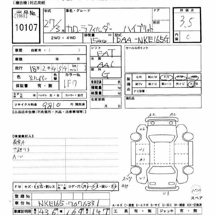 TOYOTA COROLLA FIELDER - лот 10107