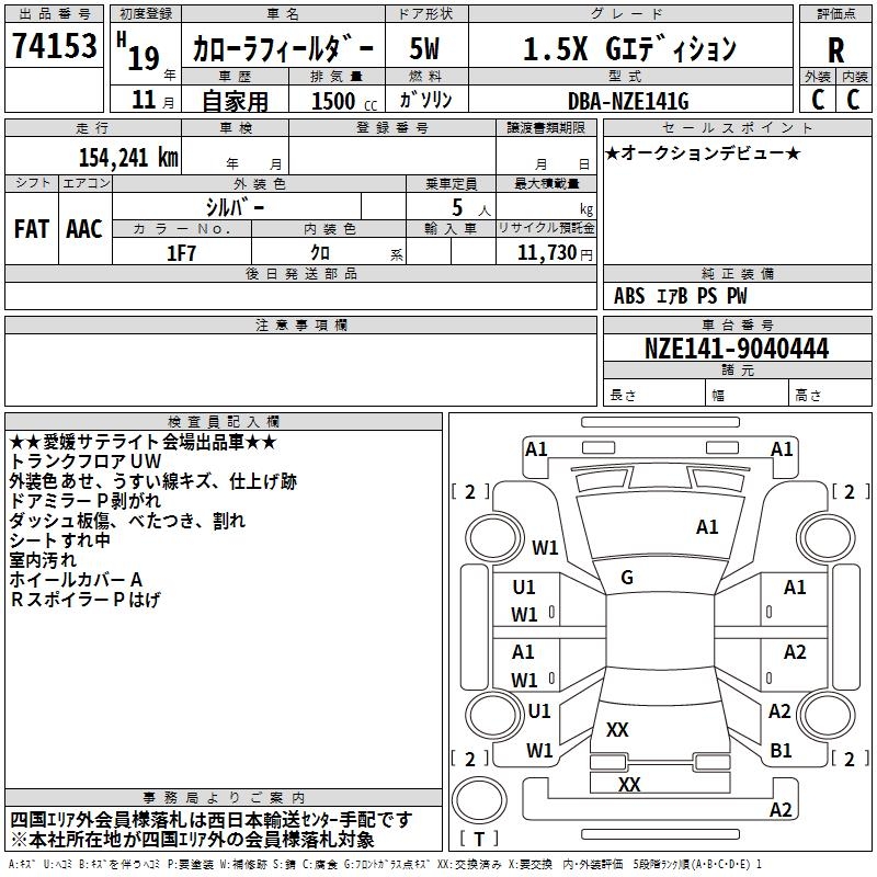 TOYOTA COROLLA FIELDER - лот 74153