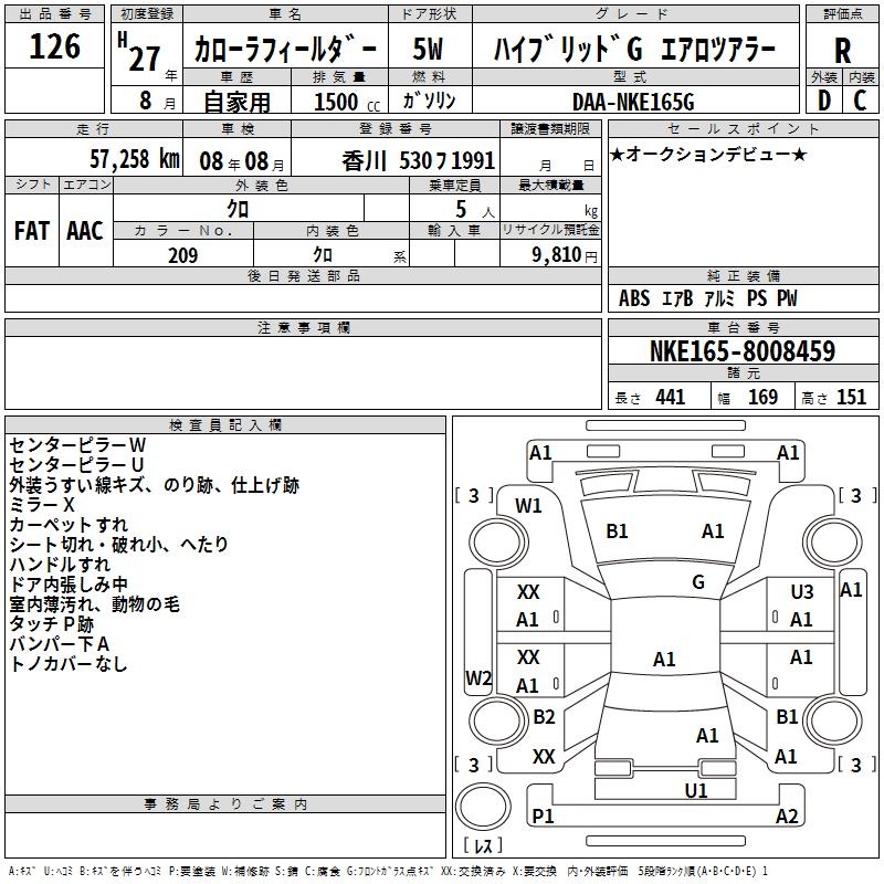 TOYOTA COROLLA FIELDER - лот 126